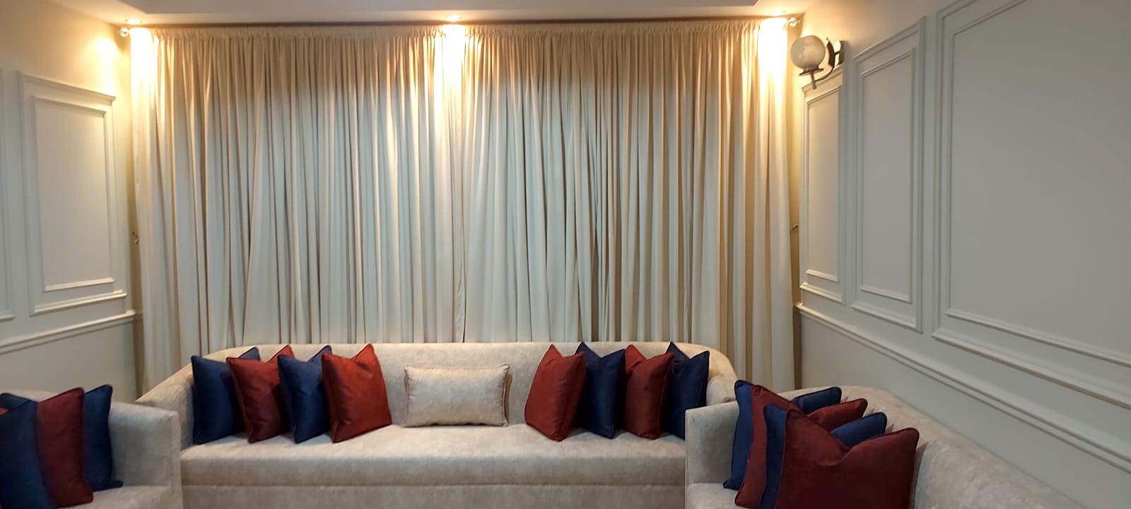 مشاريعنا في الرياض – تصميم داخلي مكتمل للستائر والكنب والمجالس